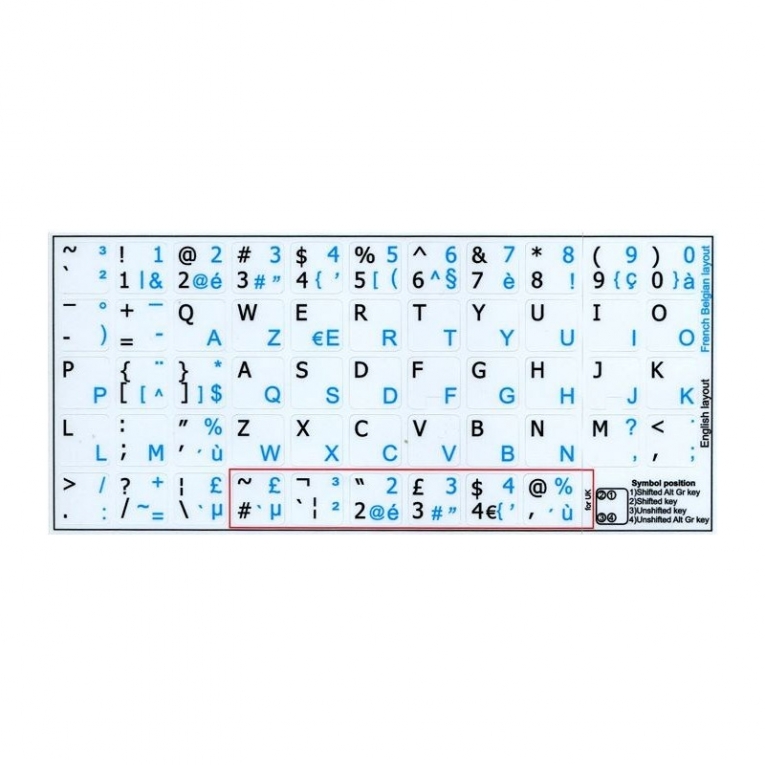 Deze QWERTY - AZERTY toetsenbordstickers zijn speciaal ontwikkeld om andere toetsenbordindelingen of vervaagde toetsenborden te vervangen. Heeft u een laptop gekocht in Duitsland dan kunt u makkelijk de indeling van uw toetsenbord veranderen naar QWERTY - AZERTY. Deze stickers zijn geschikt om zowel Qwerty als de Belgische Azerty te gebruiken. Omschakelen tussen de indelingen is gemakkelijk door de toetsencombinatie "Alt - shift" te gebruiken.